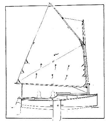 The mast is about the same length as the hull and steps in a tabernacle, both features should make for quick rigging. With a crutch or gallows to hold the struck rig you should be able to fold it all down without unhooking all those lines that a gaffer needs. I've seen it done on a Mudhen and it looks like Walter has rigged his Fatcat2 that way. If you look hard at the tabenacle in the photos you might make out that Walter also has rigged a winch to pull the mast up.