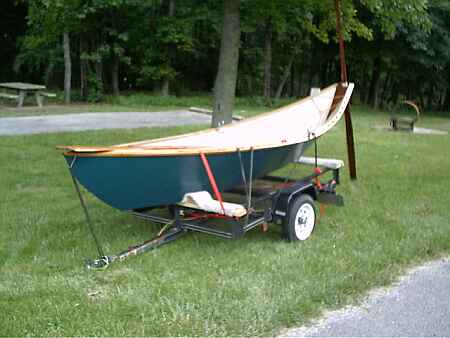 The boat is constructed of ¾" MDO on the bottom, ½" MDO on the bilge panels, foredeck and afterdeck, and ¼" " okume for the sides. Typical home improvement store lumber was used for the framing and rigging. Most of the hardware was purchased from Duckworks, with some coming from the local hardware store.