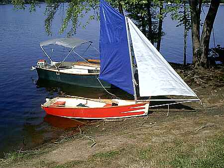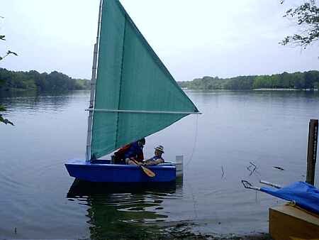 Bob Bruce brought his MiniPelican from Tennessee. I've never seen a for real Pelican and I thought this was the real thing. But Bob said it was scaled down and not full sized. It sailed well with a bidpod mast and Tyvek sail!