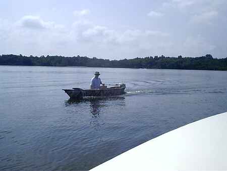 Motoring back to the campground we found the usual suspects Kilburn Adams and Bill Dulin with their matching SkiffAmericas, one of Kilburn's designs. Also seen here is a SeaPearl of Barry Papke and I'm told this is hull number 11 and the very first production SeaPearl. Kilburn used to sell SeaPearls in the olden days.