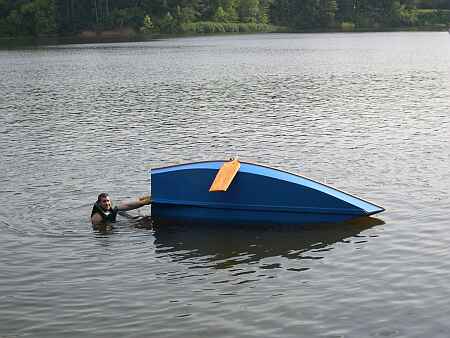 Currie Bishop was back again with his Summerbreeze skiff. He did an on purpose capsize test this year..