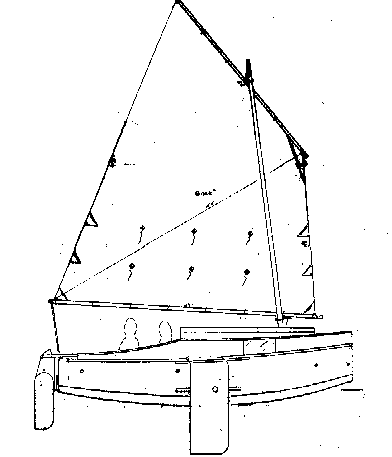 So, with that in mind, I started adding mizzens to smaller boats by designing the basic layout to balance without the mizzen. Then add a small mizzen which would be totally optional in use, when you go cruising. I think Bill Moffitt's Mikesboat, modified to have a big lugsail and the tiny mizzen, was the first I drew that way. Here he is in the Texas200, on the boat's first time afloat, flying along with no problems (that I was told about).
