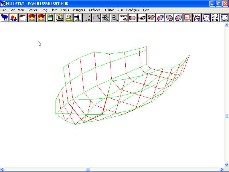 I do a "lines" drawing and I take "offsets" a regular points, enough so that I can define the shape in numbers. I use those numbers to make a model with Hullforms, a free hydrostatics program you can download with the link shown in the links section of this website. Here is the Hullform model: