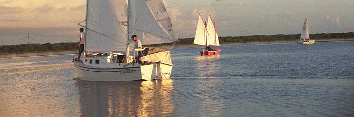Well, I gotta say there is more to the PIYC than the above. I'm not sure how the cruise would be without it but it would be different. This overnight in civilization allows folks a chance to rehab and also for some to reconsider the next three days, which would be roughing it. Some boats and some bodies were having trouble with the conditions, especially the heat, and now they took advantage of a chance to cut the cruise short. Not many, just a few and they were very wise to do so I think. Most of them got a ride to Magnolia Beach and we met them there at cruise's end. I think most will be back. Chuck and I were living the good life on Caprice but don't forget Caprice has made this journey several times, has been fine tuned to it (and maybe the cruise was fine tuned by Chuck to fit Caprice?) Anyway, the solo skippers have a much tougher time of it than the crewed boats. All of the kayaks dropped out here I think, as did eventually two of the PDR's. John sold his Echo when he got to PIYC and hitched a ride to the end mostly on Chuck's Laguna which was skippered by Bill Moffitt. (Does anybody besides me remember that Caprice was designed for Bill originally?) John said the little Echo, with no back support or foot well, was going to kill him.