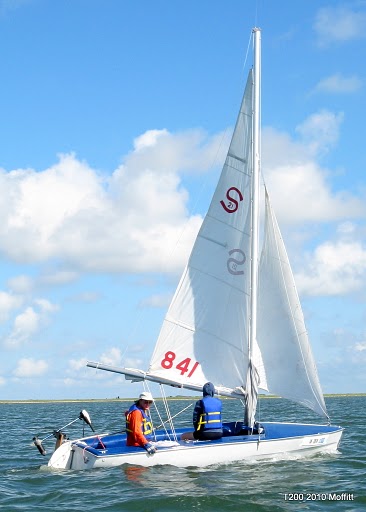 And another Moffitt photo of an old Starcraft from Iowa with another father/daughter crew. He told me the sail is from his San Juan 22 feeling it would reef better for the cruise. Again, everyone looks so bundled up to block the sun but it is 90 degrees or more.