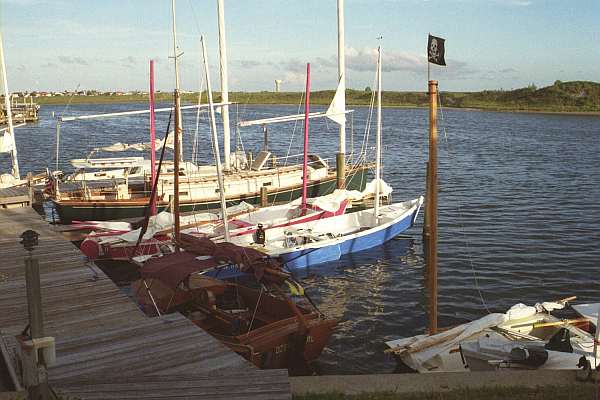 ...invites us to overnight at their wonderful facility. I'm not sure why they do this but I'm very glad they do, maybe it's a "the circus is coming to town" thing. As always Chuck says the entrance is another shallow narrow windy bitch so before we get there we wake up Mr Honda and drop the main. The harbor is already full of our boats. We tie up to the outer wall but later are given an empty slip for the night. Our cruisers eventually pack the place full.