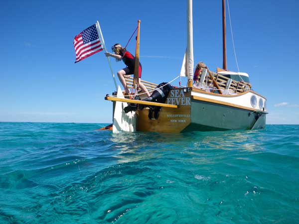 ...Our old buddy Garth Battista of Breakaway Books has escaped! He towed his Cormorant and his family, between East Coast blizzards, from New York to Miami and is now acruisin' with them all in the Bahamas, etc.. He keeps an updated log at