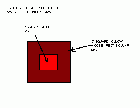 ...Let's say the above mast was made with a square cross section, say 3" square with a 1" square hole down the middle. Can we reinforce it with a 1" square steel bar placed in the hollow center.