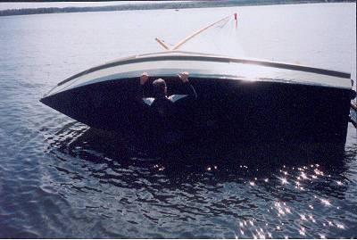 This is a rerun of the 15sep99 issue which featured a capsize test done by Herb McLeod on his then new AF3. I want to keep this one up front because it demonstrates what you need to do when you capsize a sailboat which is not self righting, but rather is self rescuing. That is you can get it back upright and going again if you are properly prepared and if the boat, like AF3, has ample built in flotation or airboxes to keep it floating high on its side as you recover. A few things I'd like to point out. 1) Herb's tests were done in very benign conditions and if you capsize in really bad conditions recovery could be a lot more difficult or impossible. 2) If you tinker with a design such that you remove flotation or airboxes or enlarge hatches or move them off centerline, etc., the recovery system may not work and the boat may swamp to the point where you cannot recover. 3) If you have a design with no flotation or airboxes at all, such as most any traditional open boat, recovery is about impossible because the boat will swamp completely and be unstable even if it doesn't sink.