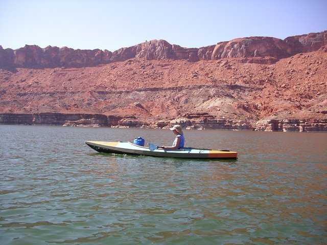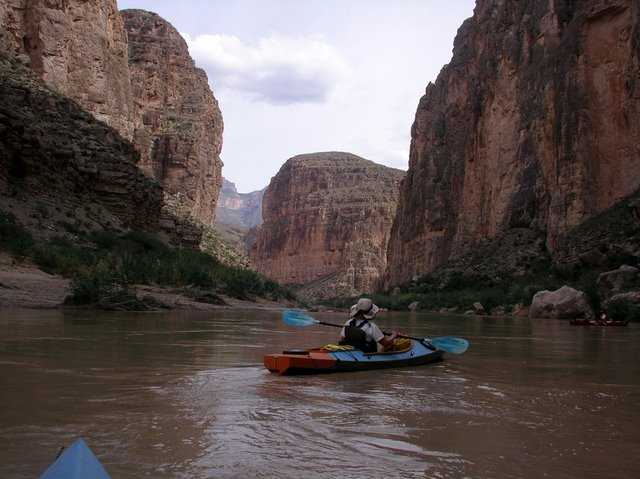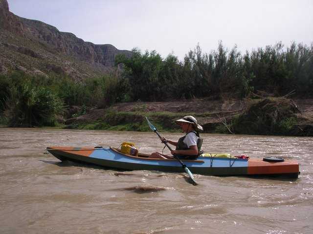 Duckworks' Sandra Leinweber paddles her new RioGrande on the Rio Grande.