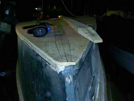 Almost forgot to say that I also glassed over the butt joints and put a daub of epoxy on any fastener that wasn't under fiberglass. There were only a few uncovered nails and I use galvanized roofing nails for this sort of work as a rule.