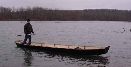 Well, Kyle Kosovich in Springfield, Mo, built the prototype. He knew the history of the boats and is using his just as the old ones were used, (which is pretty unusual). Don't even ask me about putting power on such a long light hull. You are on your own there. Remember these were never used at high speeds or in big open water. They are slow stream drifters. Here is Kyle's boat in the very waters the original boats floated: