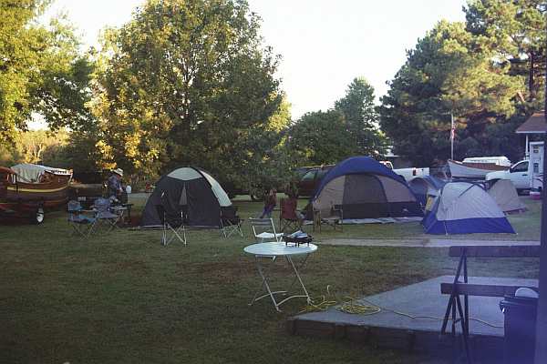 We check the place over a bit, including a pass by the ramp area to see some messabouters who had already launched, and get in on the first Monies' feed, all excellent. Recall if you will that the Monies women kept us all from starving on the Texas 200. And contrast this to my own Rend Lake messabout which is close to a bread and water affair. Then many chats, meeting new folks, getting a sleep spot and off to bed.