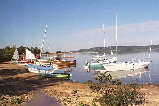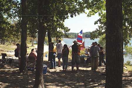 BACKGROUND...Mike Monies has a home and boatshop a few blocks from a free ramp on Lake Eufala in eastern Oklahoma. You might remember him as the Laguna builder/sailor who completed the Everglades Challange, the OXB130 and the Texas200 in his Laguna this year. Anyway, he was thinking why not have a messabout at Lake Eufala? Why not on Columbus Day weekend? Why not call it Sail Oklahoma? So he did it.