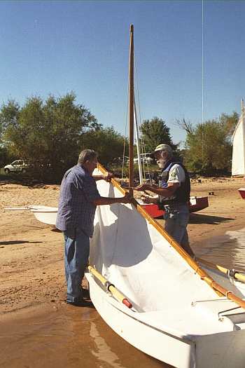 Here he is doing the last fussing. Behind him is Richard Spelling's veteran Bolger Navigator. To the right is Monies' new Welsford PDR.