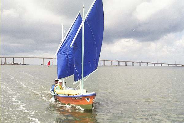 He took it on the Texas200 pretty much on its first sail. Let's seeeee.....as I recall he got dismasted on the second day. They rebuilt only to have the sail blow totally out the next day. Lots of wind down there!! Ken also had an abreviated deck and said that was a mistake. I felt the basic design was proven by now. Clearly the boat is quite stable and if you intend to go out in a real blow you might make a heavier mast and sail.