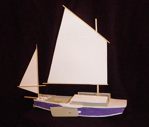 This is Ted Arkey's Jukebox2 down in Sydney. Shown with the "ketchooner" rig, featuring his own polytarp sails, that is shown on the plans. Should have a sailing report soon.