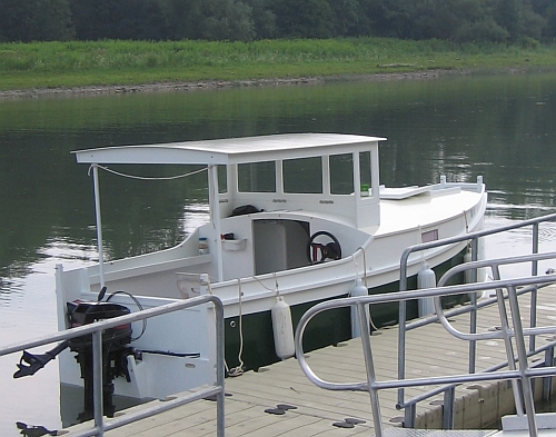 IMB features a "Birdwatcher" cabin, full length with panoramic windows and a center walkway slot in the roof. Everyone rides inside. This style of boat was invented by Phil Bolger in the early 1980's.