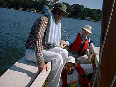 While I was sailing with Gerry, Bob's boat came out on the lake with four adult males and no sign of bogging down, showing that these fat pram shapes, very much like my Piccup Pram, can handle a lot of weight in the 13.5' length.