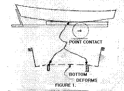 Most likely you'll have to scrap that bunk system and build a custom set for your boat. Most homebuilt sailers and rowboats have enough rocker in their bottoms to contact those longitudinal bunks only in one spot. The entire weight bears on that one spot and the hull will deform there. See Figure 1 for what can happen. We'll return to this subject after we've found the best place for your boat on the trailer.