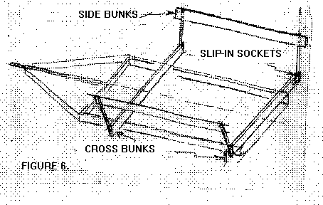 Look at Figure 4. Here a plywood sheet as wide as the bottom forms a "sling" and distributes the load over a wide area instead of just at a couple of points. This is probably the most gentle system and has other advantages such as being able to do general hauling. This type of bunk doesn't need padding, but the other two types should.