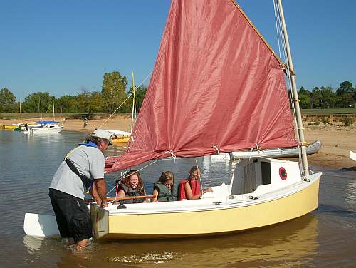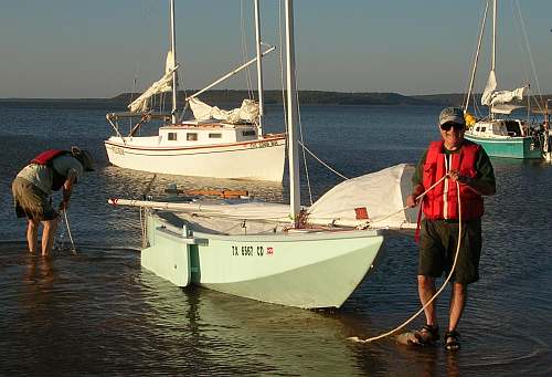 A few steps down the beach Paul Ellifrit had his Family Skiff ready to sail...