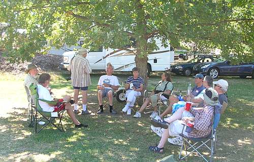 Back to the estate for dinner and more stories. After dark, Jackie Monies got out the microphone and amp and had an "Ask The Designer" session. So that was why I was told to be there by Friday evening as I was to be in one of three hot seats before the gathering. John Welsford was next and Graham Brynes next. Graham Brynes grew up in Brisbane, Australia, sailed around the world and somehow ended up in North Carolina where, unlike myself, he really makes a living doing real boats. He still has a great fire to do small boats though and is well known for his Core Sound boats and he won the Everglades Challenge in 2006 with his Core Sound 17 along with Fred VanRensburg. I felt a bit out gunned up there with two world travellers who make a good living doing real boats. But then I thought my own background, which is no boating background at all until I was maybe 30, and in the Midwest where we have to reinvent everything, was probably more like that of most MIdwest messabouters. So we just aswered questions as best we could based on our varied experiences. The questions were somewhat typical I think. About materials and how long to build. The sort of stuff that is pretty hard to explain and answer mostly because the builders vary so much and have different expectations. Luckily no one asked me why I draw ugly boats.