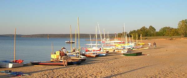 We hit the road early Thursday with the idea of getting to Eufala by late afternoon after 7 or 8 hours on the road. Paul was towing his Family Skiff. A nice day to drive through southwestern Missouri and into Oklahoma. With Jackie Monies' maps we arrived unlost in plenty of daylight, set up our tents, and then down quickly to the lake. We were hardly the first.....