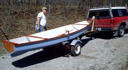 Here he is with his weight located properly for a level boat. At this time he marked the seat location on the bottom of the boat so he could easily repeat the location in the future.