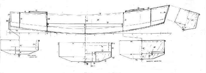 Mikesboat is a big Piccup Pram. It is slightly narrower in proportion. The idea was to have something like Piccup that was large enough to take the family so she has two bench seats 8' long. It should be a good expedition solo boat with a boom tent fitted over the cockpit. Mikesboat has the Piccup layout with buoyancy/storage chambers fore and aft but now there is also enough room for a small motor well across the stern. As a rule something like this needs maybe 2hp to run at hull speed and even then there would be some extra. This shape of hull with multichines has proven good in rough water with fair speed.