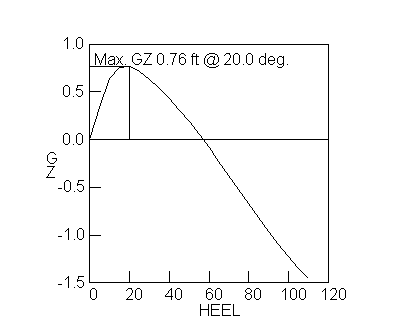 Here Hullforms is calling the righting arm "Gz" instead of "L". The maximum value is .76' so the maximum righting moment of the lightly loaded Ladybug would be .76 x 400 = 304 ft-lb.