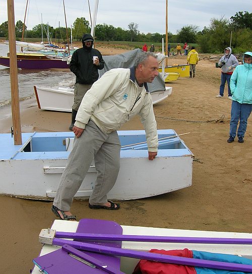 ...Richard walked down the line of boats at the meet, maybe 20 or 30 there, and one by one discussed the good and bad points of each boat with regard to capsize recovery. It was sort of cruel, although Richard is likeable and jovial. He didn't ask "whose boat is this?" or anything, just lit into each one. He was going to capsize test a boat to demonstrate the details of recovery and was chosing a subject as he did this. But this is when the real knowledge came out as he discussed details that would make a boat better for recovery.