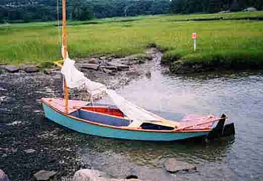 I had to tinker with the sail rig which was of the same style shown here but at least 50% larger. On the heavy old boats that might have been OK but I'm sure it would be way too much for the lighter plywood boat. I kept the large centerboard. I added hull air boxes bow and stern for a chance at self rescue after swamping. Also added some benches where the original boat was wide open from stem to stern with three simple thwarts.