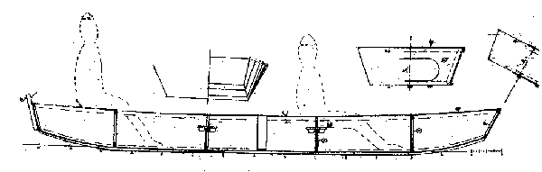 Anyway, River Runner uses five sheets of 1/4" plywood. The idea of the light ply is to keep the boat light enough to manhandle into a truck or onto a car roof but it will take a diligent builder to keep it light. I suspect the aluminum original would be no heavier. Simple nail and glue construction.