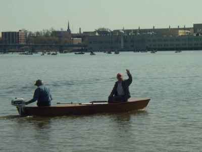 And the Vole in New York is Garth Battista's of www.breakawaybooks.com, printer of my book and Max's old outboard book and many other fine sports books. Beautiful job! Garth is using a small lug rig for sail, not the sharpie sprit sail shown on the plans, so I will continue to carry the design as a prototype boat. But he has used it extensively on his Bahamas trip towed behind his Cormorant. Sort of like having a compact car towed behind an RV.